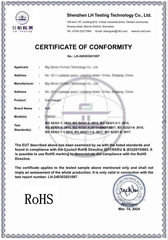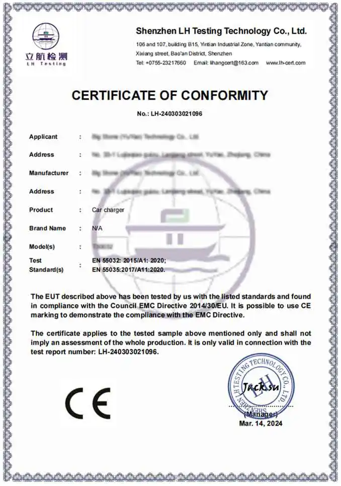 R: Essendo una fabbrica professionale, i nostri prodotti sono pienamente conformi agli standard internazionali di sicurezza e ambientali. Forniamo prodotti certificati CE e RoHS. Inoltre, il nostro impianto di produzione è certificato BSCI e ISO, garantendo che i nostri adattatori per caricatori per auto soddisfino i rigorosi standard tecnici ed etici richiesti dai marchi globali premium.